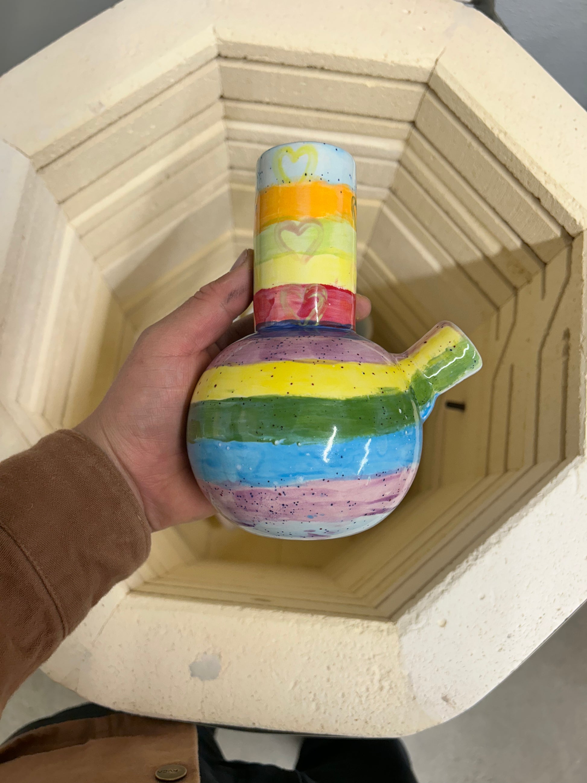 You paint it → We fire it → You come back and pick up your finished masterpiece (and yes, it’ll be fully functional).